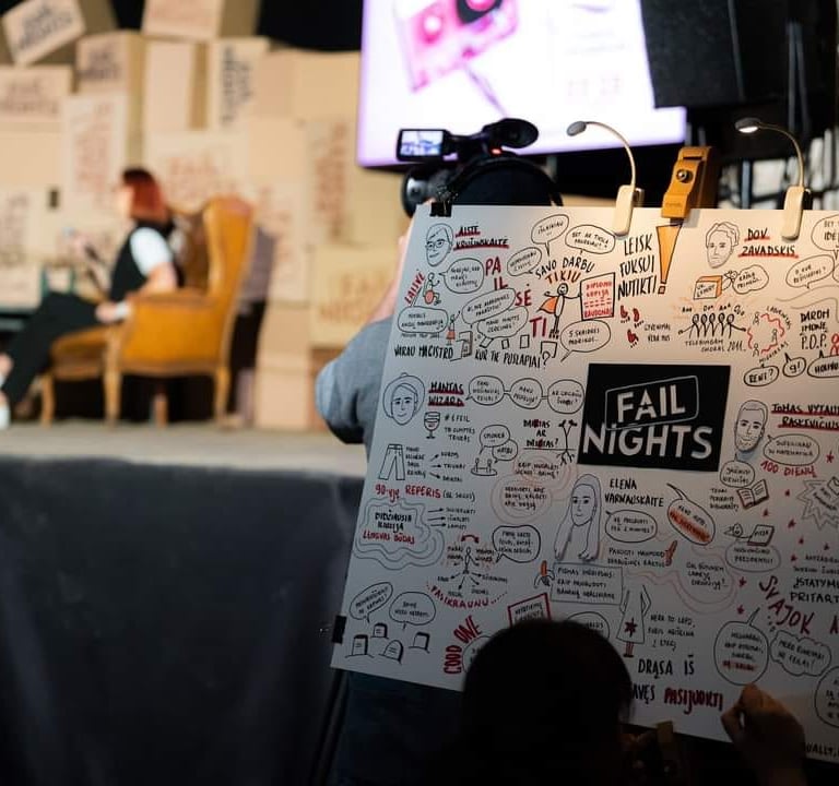 FAIL NIGHTS are the only events of this format in Lithuania, where brave speakers share uncomfortable and never-before-told stories about their professional failures.